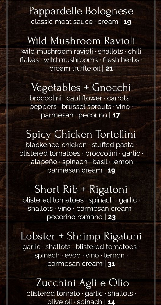 Vegetables orPasta- marinara, Alfredo, butter, evoo, pesto, vodka.